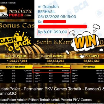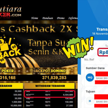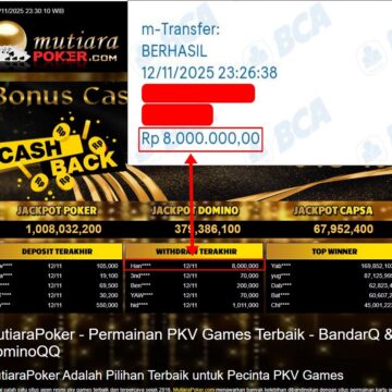 Bukti Withdraw ( 8.000.000,- ) Member Setia MutiaraPoker
