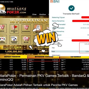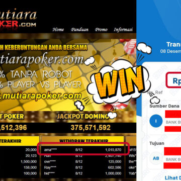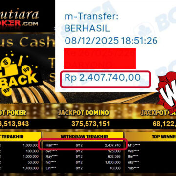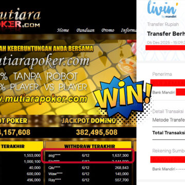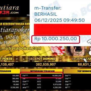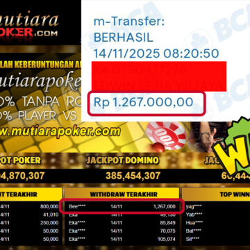Bukti Withdraw ( 1,267,000,- ) Member Setia MutiaraPoker