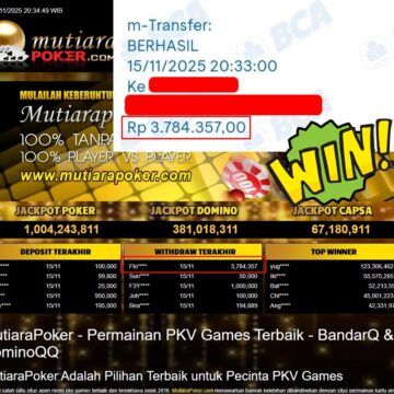 Bukti Withdraw ( 3.784.357,- ) Member Setia MutiaraPoker