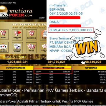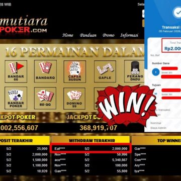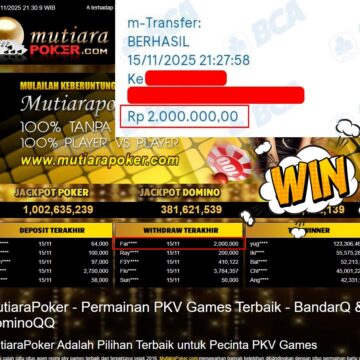 Bukti Withdraw ( 2.000.000,- ) Member Setia MutiaraPoker