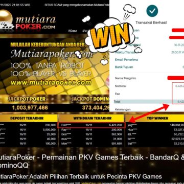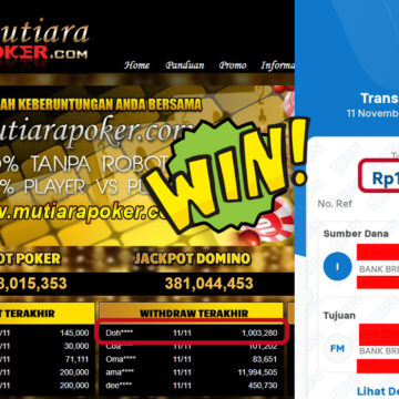 Bukti Withdraw ( 1.011.000,- ) Member Setia MutiaraPoker