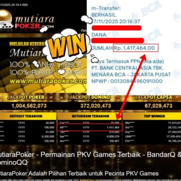Bukti Withdraw ( 1.417.464,- ) Member Setia MutiaraPoker