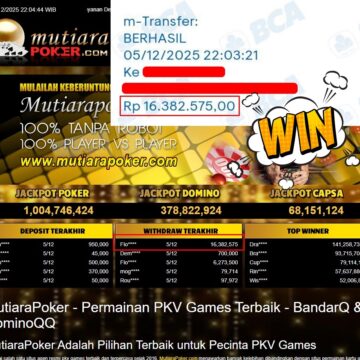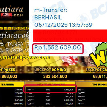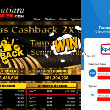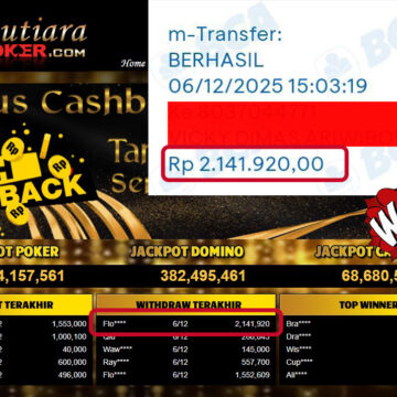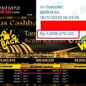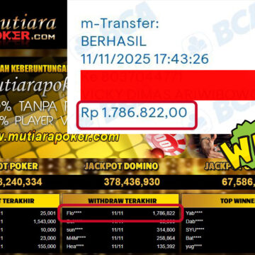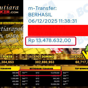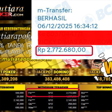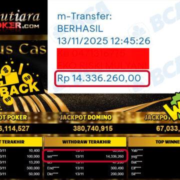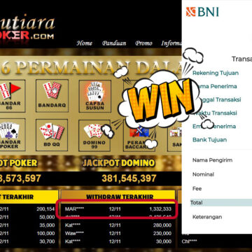 Bukti Withdraw ( 1,332,333,- ) Member Setia MutiaraPoker