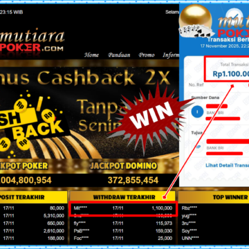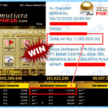 Bukti Withdraw ( 1,100,000,- ) Member Setia MutiaraPoker