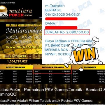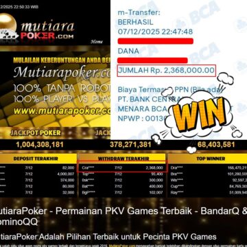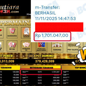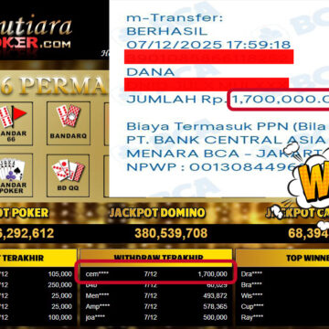 Bukti Withdraw ( 1,701,047,- ) Member Setia MutiaraPoker