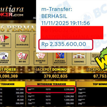 Bukti Withdraw ( 2,335,600,- ) Member Setia MutiaraPoker