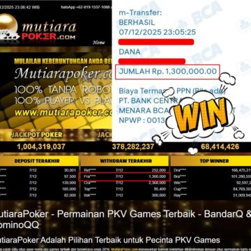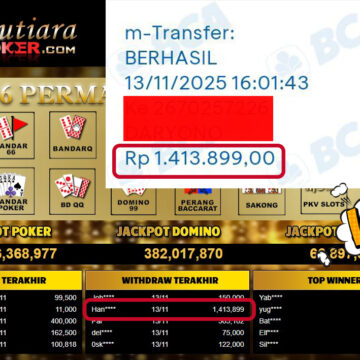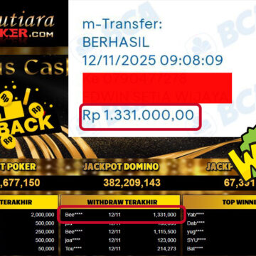Bukti Withdraw ( 1,331,000,- ) Member Setia MutiaraPoker