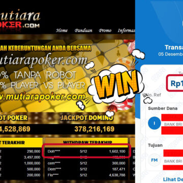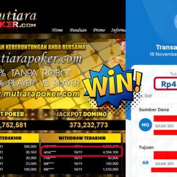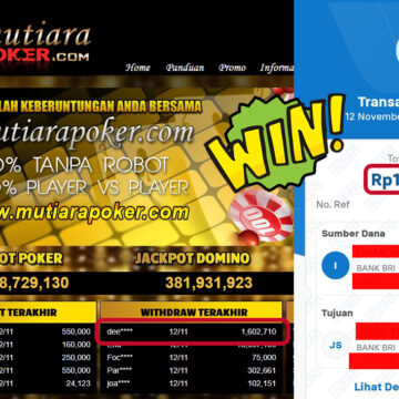 Bukti Withdraw ( 1,602,710,- ) Member Setia MutiaraPoker