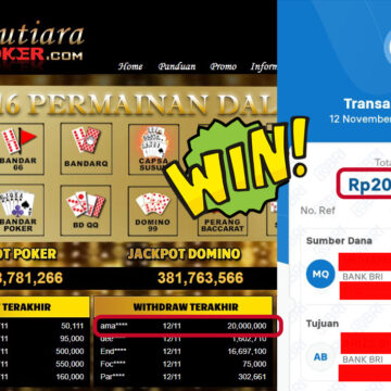 Bukti Withdraw ( 20,000,000,- ) Member Setia MutiaraPoker