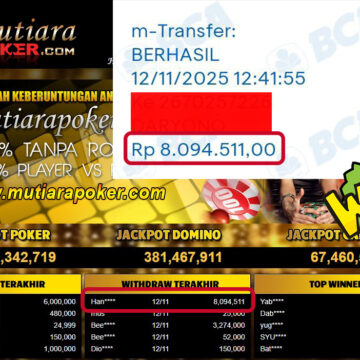 Bukti Withdraw ( 8,094,511,- ) Member Setia MutiaraPoker