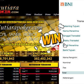 Bukti Withdraw ( 10,815,500,- ) Member Setia MutiaraPoker