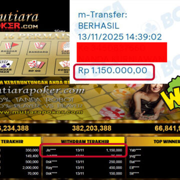 Bukti Withdraw ( 1,150,000,- ) Member Setia MutiaraPoker