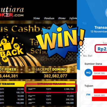 Bukti Withdraw ( 2,586,134,- ) Member Setia MutiaraPoker