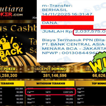 Bukti Withdraw ( 2,037,575,- ) Member Setia MutiaraPoker