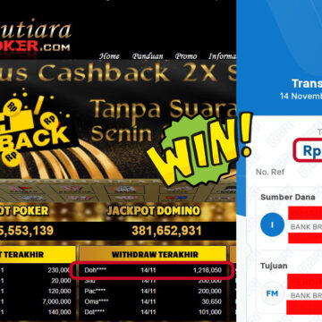Bukti Withdraw ( 1,218,050,- ) Member Setia MutiaraPoker