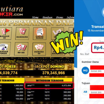 Bukti Withdraw ( 4,473,494,- ) Member Setia MutiaraPoker