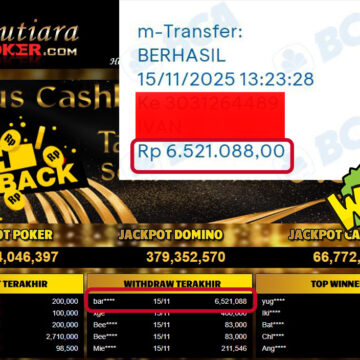 Bukti Withdraw ( 6,521,088,- ) Member Setia MutiaraPoker