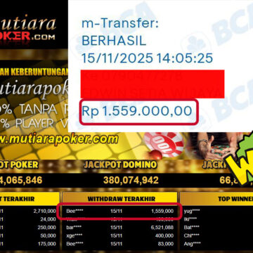 Bukti Withdraw ( 1,559,000,- ) Member Setia MutiaraPoker