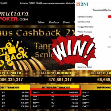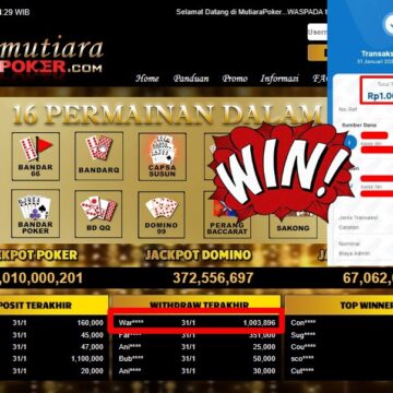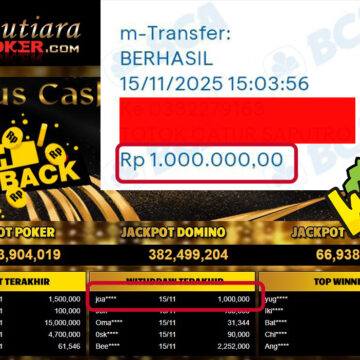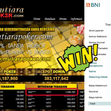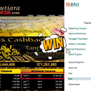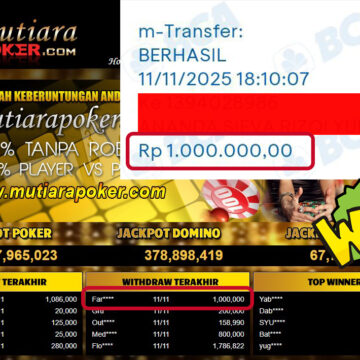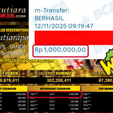 Bukti Withdraw ( 1.000.000,- ) Member Setia MutiaraPoker