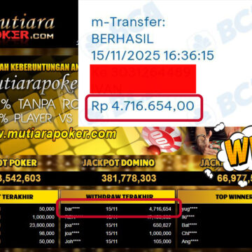 Bukti Withdraw ( 4,716,654,- ) Member Setia MutiaraPoker