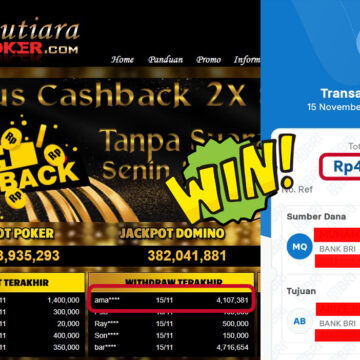 Bukti Withdraw ( 4,107,381,- ) Member Setia MutiaraPoker