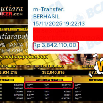 Bukti Withdraw ( 3,842,110,- ) Member Setia MutiaraPoker