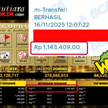 Bukti Withdraw ( 1,143,409,- ) Member Setia MutiaraPoker