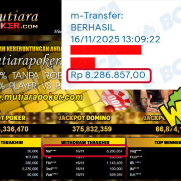 Bukti Withdraw ( 8,286,857,- ) Member Setia MutiaraPoker
