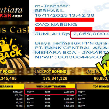 Bukti Withdraw ( 2,059,000,- ) Member Setia MutiaraPoker