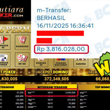 Bukti Withdraw ( 3,816,028,- ) Member Setia MutiaraPoker