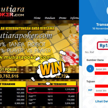 Bukti Withdraw ( 1,510,000,- ) Member Setia MutiaraPoker