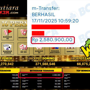 Bukti Withdraw ( 2,580,900,- ) Member Setia MutiaraPoker