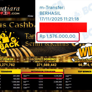 Bukti Withdraw ( 1,576,000,- ) Member Setia MutiaraPoker