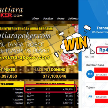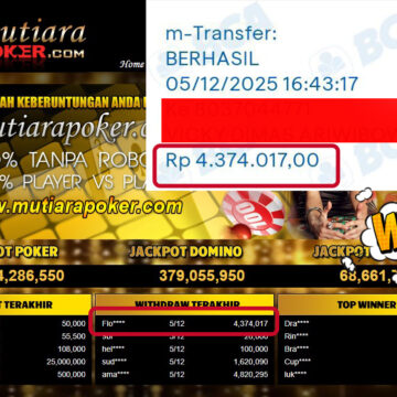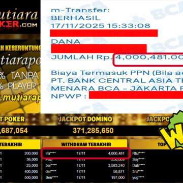 Bukti Withdraw ( 4,000,481,- ) Member Setia MutiaraPoker