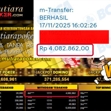 Bukti Withdraw ( 4,082,862,- ) Member Setia MutiaraPoker