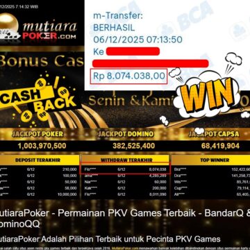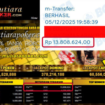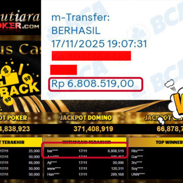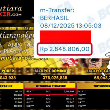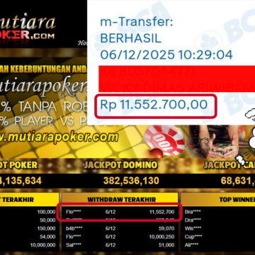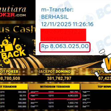 Bukti Withdraw ( 8,063,025,- ) Member Setia MutiaraPoker