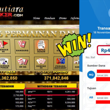 Bukti Withdraw ( 4,261,180,- ) Member Setia MutiaraPoker