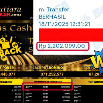 Bukti Withdraw ( 2,202,099,- ) Member Setia MutiaraPoker