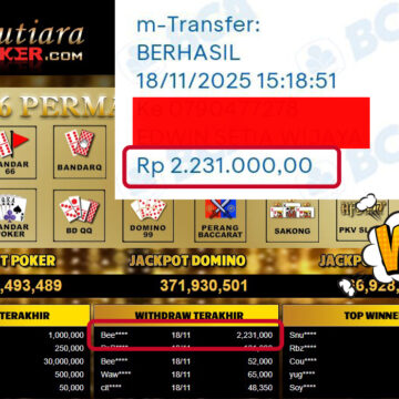 Bukti Withdraw ( 2,231,000,- ) Member Setia MutiaraPoker