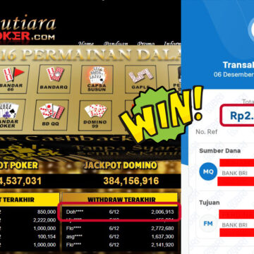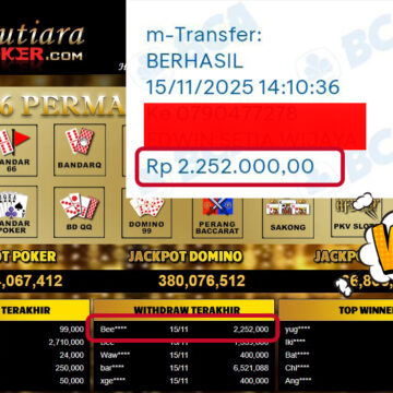 Bukti Withdraw ( 2,252,000,- ) Member Setia MutiaraPoker