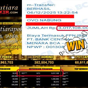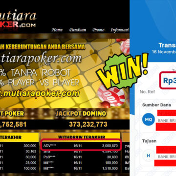 Bukti Withdraw ( 3,000,870,- ) Member Setia MutiaraPoker