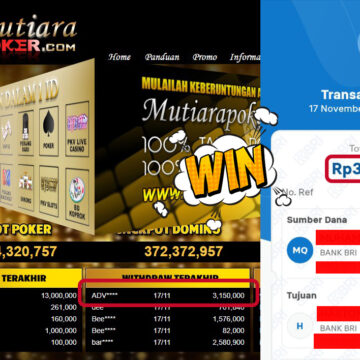 Bukti Withdraw ( 3,150,000,- ) Member Setia MutiaraPoker
