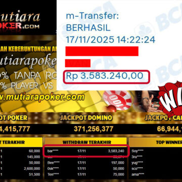 Bukti Withdraw ( 3,583,240,- ) Member Setia MutiaraPoker