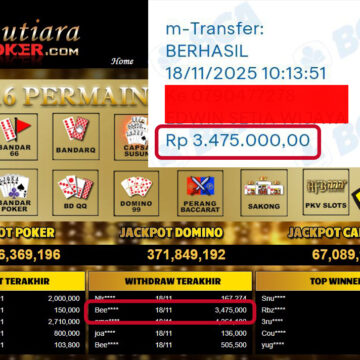 Bukti Withdraw ( 3,475,000,- ) Member Setia MutiaraPoker