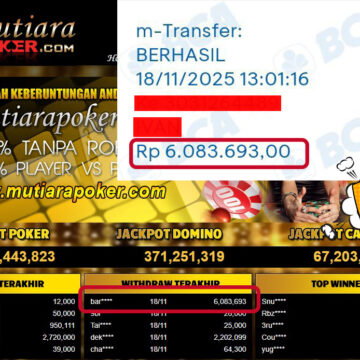 Bukti Withdraw ( 6,083,693,- ) Member Setia MutiaraPoker