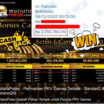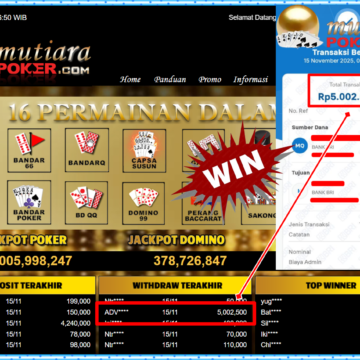 Bukti Withdraw ( 5,002,500,- ) Member Setia MutiaraPoker