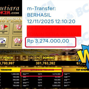 Bukti Withdraw ( 3,274,000,- ) Member Setia MutiaraPoker