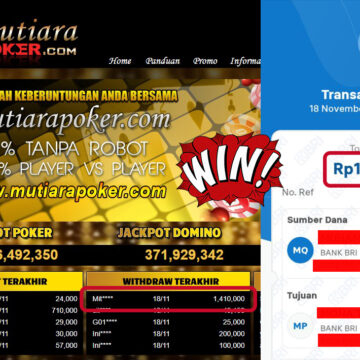 Bukti Withdraw ( 1,410,000,- ) Member Setia MutiaraPoker
