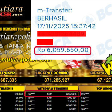 Bukti Withdraw ( 6,059,650,- ) Member Setia MutiaraPoker