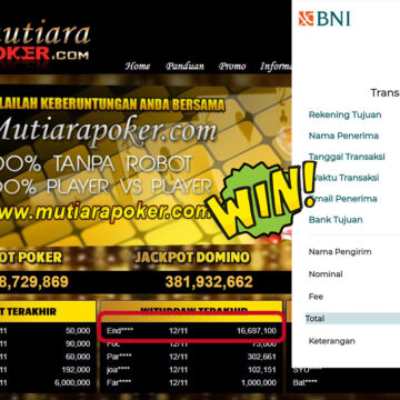 Bukti Withdraw ( 16,697,100,- ) Member Setia MutiaraPoker